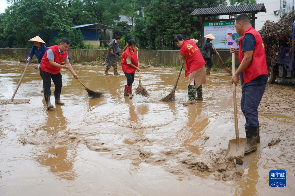 On June 21, 2022, in Zhangjiafan Community, Sizhou Town, Dexing City, Jiangxi Province, party member cadres were cleaning up mud and garbage. Xinhua News Agency reporter Zhou Mi photo