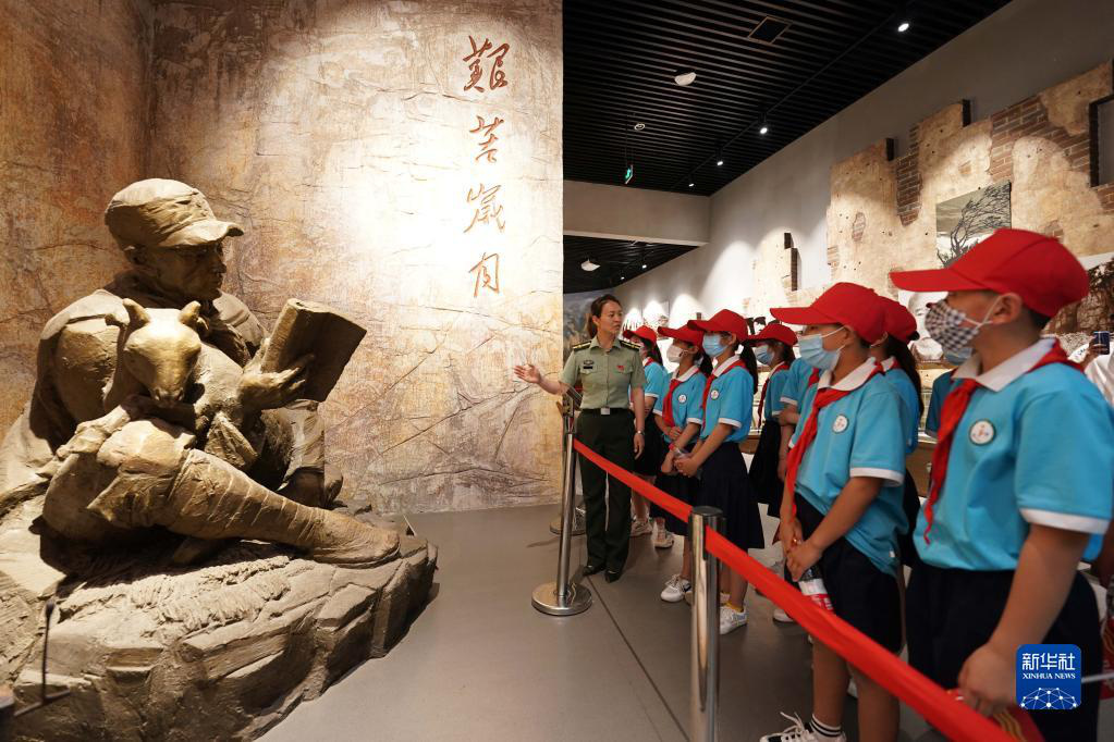 On May 30, 2021, in the exhibition hall of China People’s Anti-Japanese Military and Political University, located in Jiangshui Town, Xindu District, Xingtai City, Hebei Province, the staff told the primary school students about the history of the Anti-Japanese War. Xinhua News Agency reporter Yan Yushe